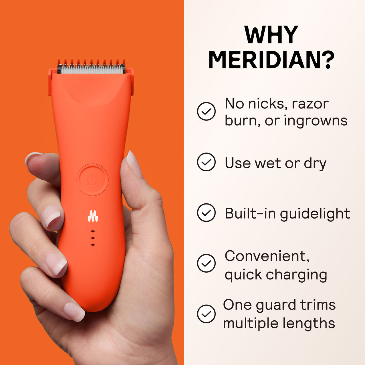 I’ve been really impressed with the Meridian Trimmer Plus! As a woman, I honestly wasn’t sure if it would work well for me, but I was pleasantly surprised. It’s super gentle on the skin, easy to use, and completely waterproof, which makes shower grooming a breeze. The battery life is excellent, and I haven’t had any issues with irritation or nicks. I absolutely love it!